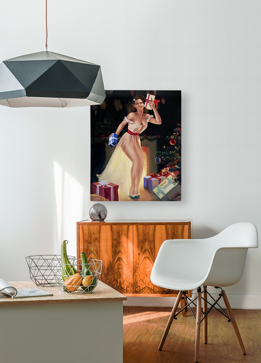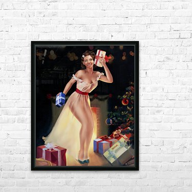 Why are there so few vintage African American pin-up paintings? Early Artist believed, "There weren't enough pretty black women to paint". This sad outlook has deprived us of classic paintings showcasing black beauty. My works are an attempt to correct an art community wrong. This piece is inspired by Gil Elvgren’s “A Christmas Eve (Waiting for Santa)” my muse is my daughter and aspiring model Nevaeh