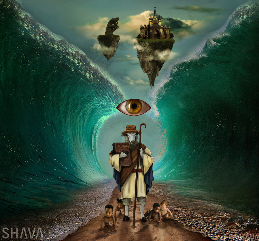 Moses leading Israelites through Red Sea