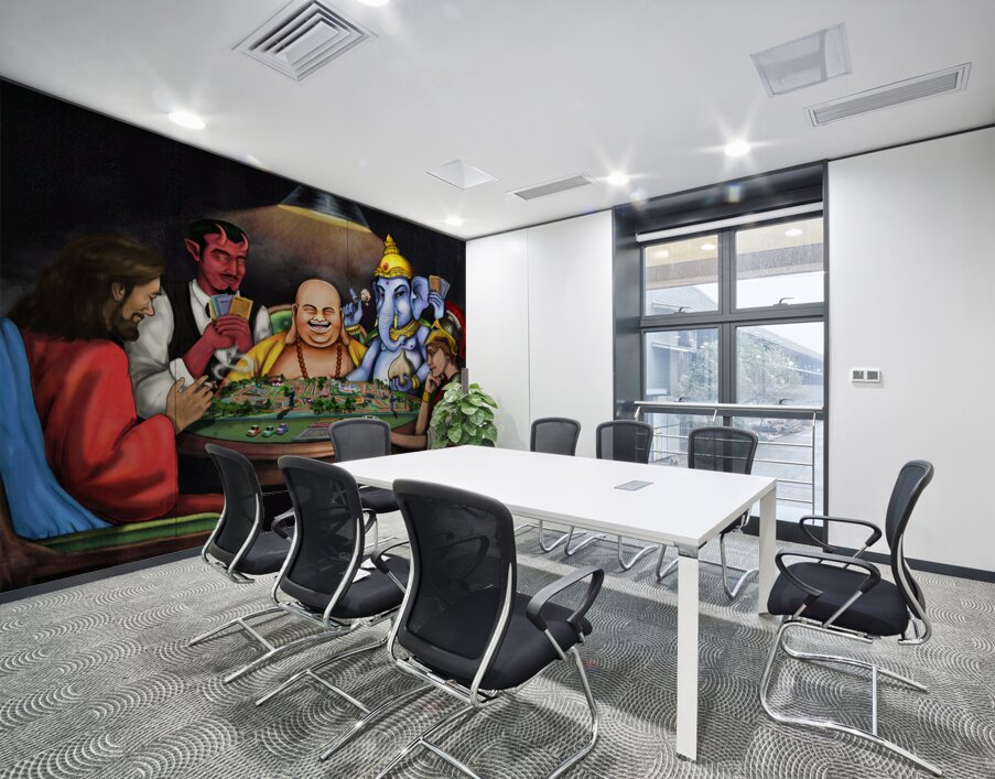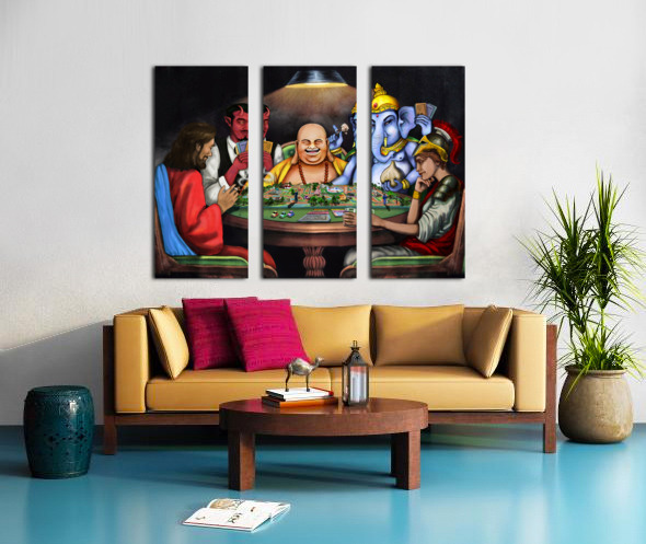 This piece depicts a thought-provoking scene where figures like Jesus, Lucifer, Buddha, Ganesha, and Athena are engaged in a game symbolizing life. The underlying concept reflects on the idea that while we earnestly pursue our beliefs and truths, these religious figures, creations of human culture and thought, appear to be orchestrating a playful yet profound game with our lives. This piece invites contemplation on the nature of faith, belief, and the human-made constructs of religion.